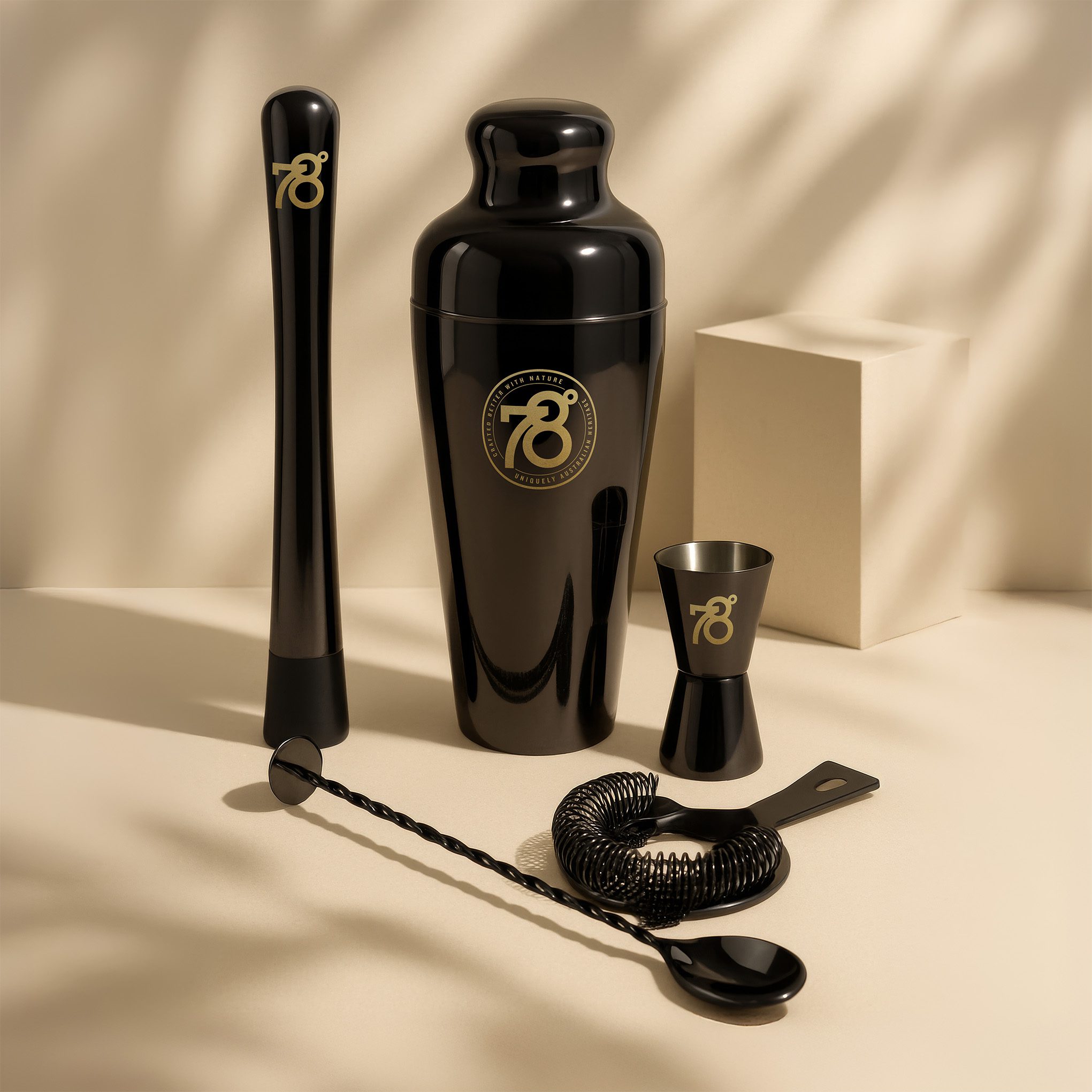 Crafted for enthusiasts and professionals alike, this set pairs beautifully with the bold, flavour-obsessed spirits of 78˚ Distillery. Elevate your home bar, refine your technique, and celebrate the art of cocktail making—unbound by tradition and made better with nature.